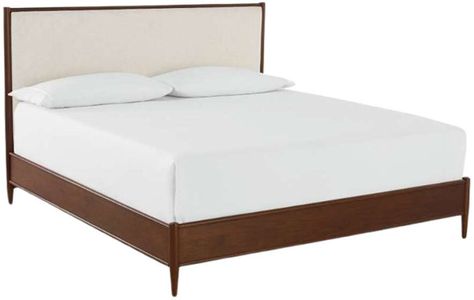 Employing the classic characteristics of danish mid-century modern design, the copenhagen upholstered bed delivers a more softly styled interpretation featuring an upholstered headboard. The linen blend fabric of the headboard is framed in the warmth of american walnut, creating an oasis of tranquility while honoring your modern casual style.Read More