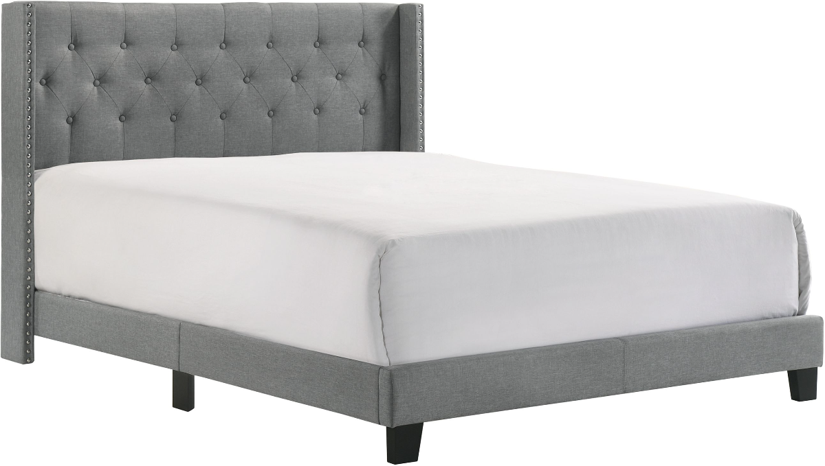 Lay down and relax in your bedroom area with this bed from the Makayla collection, It has a tufted headboard and is upholstered in grey. Make a bold statement by incorporating this bed into your home.Read More