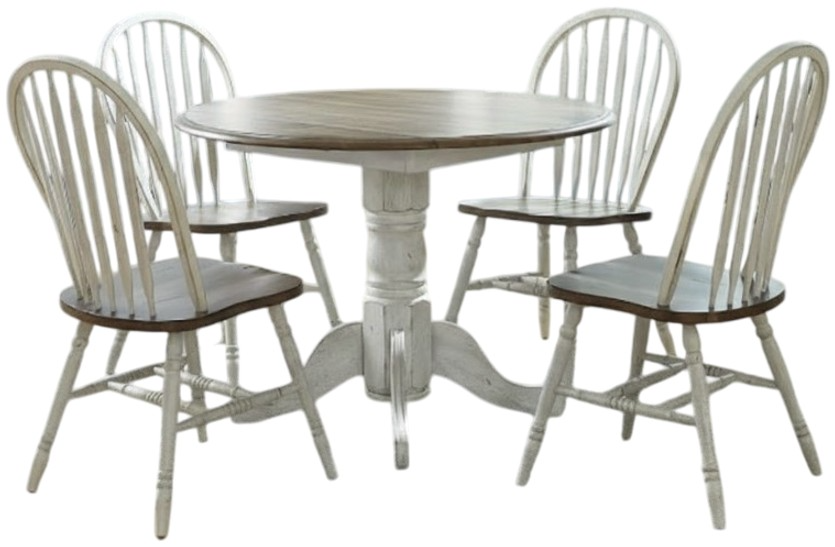Create the décor of your dreams with the Carolina Crossing five-piece drop leaf set. Crafted with excellence using rubberwood solids, this set features an antique honey and white finish with heavy distressing and includes the drop leaf table and four Windsor side chairs.Read More