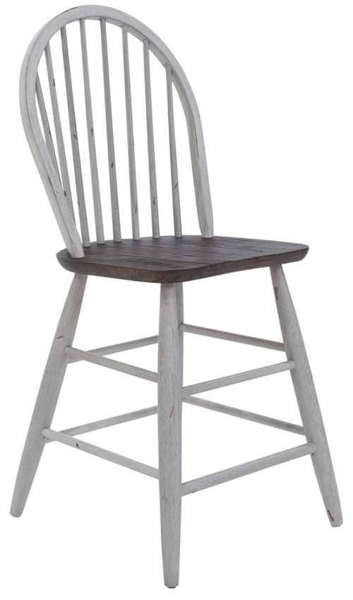 Sit in style and comfort with the Farmhouse Windsor back counter chair. Crafted of rubberwood solids, this piece features a timeless heavy distressing and nylon chair glides to protect your flooring. The two-tone white finish with wood tone seat creates a versatile look that is sure to be the perfect addition to any space.Read More