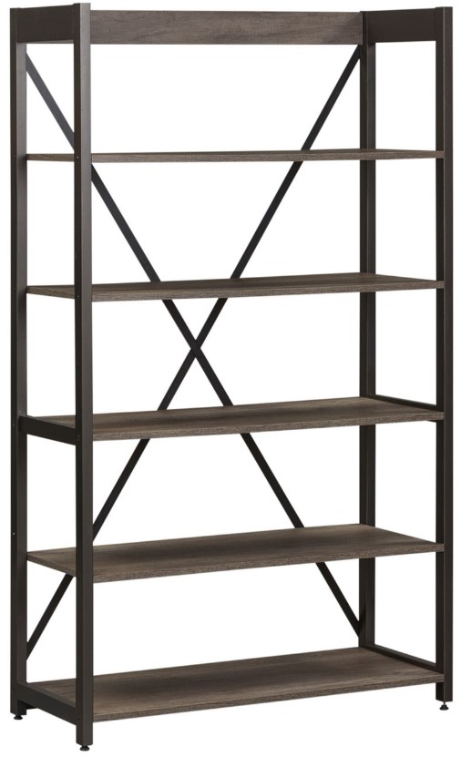 Create a natural feeling with the Tanners Creek 72" bookcase. Crafted with melamine and a rubberwood solid frame, this piece features a Greystone finish, open ends finished in a dark pewter metal, and floating shelf design.Read More