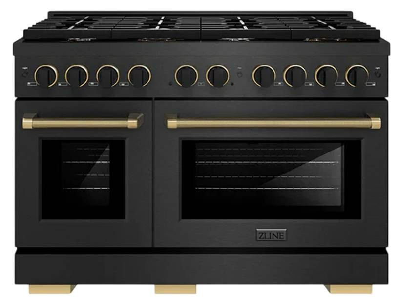 ZLINE Designer Collection - This limited release fuses an innovative Black Satin Stainless Steel base finish with detailed Matte Black and Champagne Bronze knob and handle accents to capture the essence of ZLINE’s design ethos of purposeful beauty paired with timeless functionality